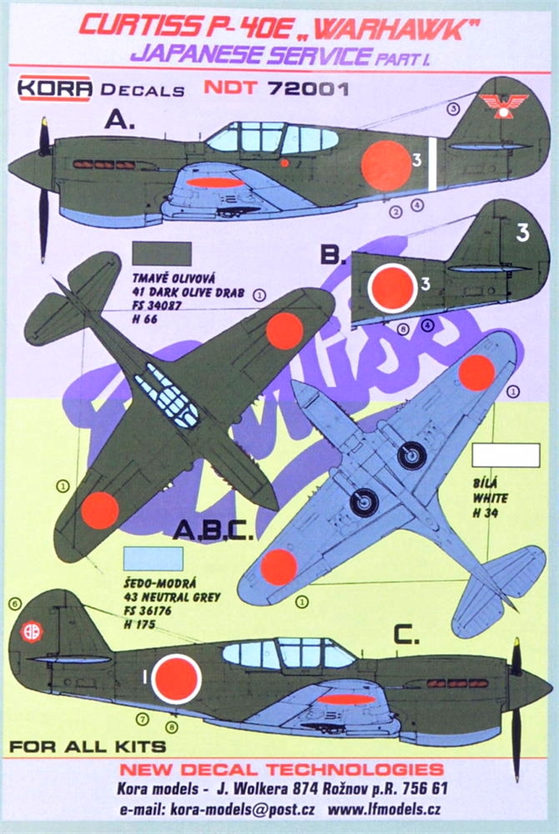 KORA MODEL - 1/72 Decals Curtiss P-40E Japanese Service Part 1