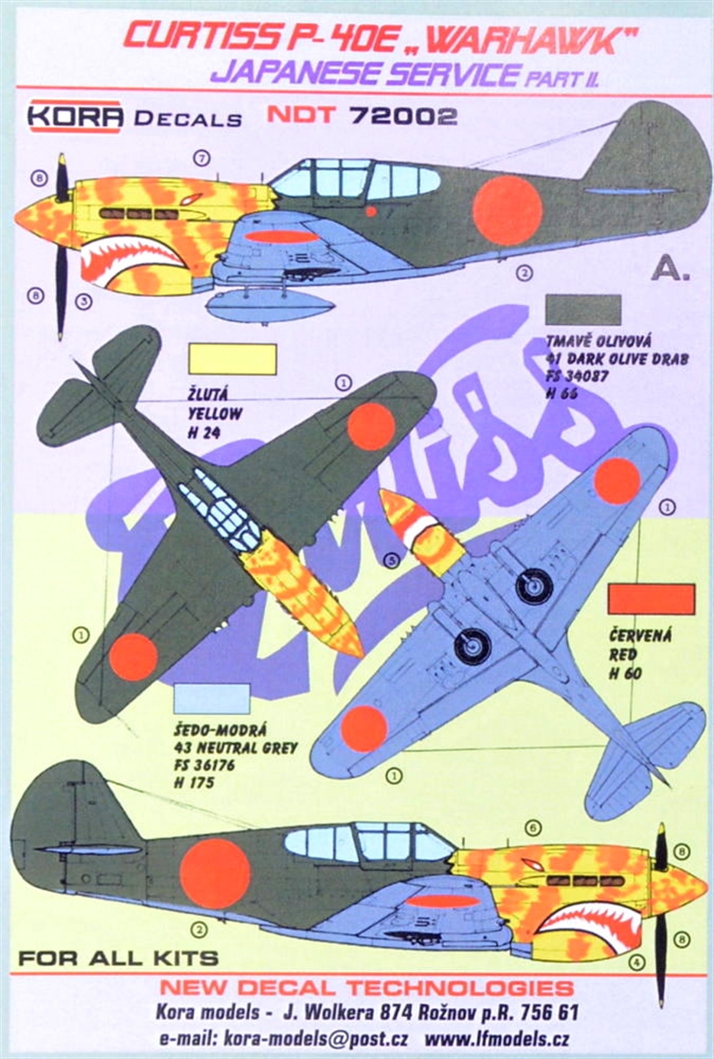 KORA MODEL - 1/72 Decals Curtiss P-40E Japanese Service Part 2
