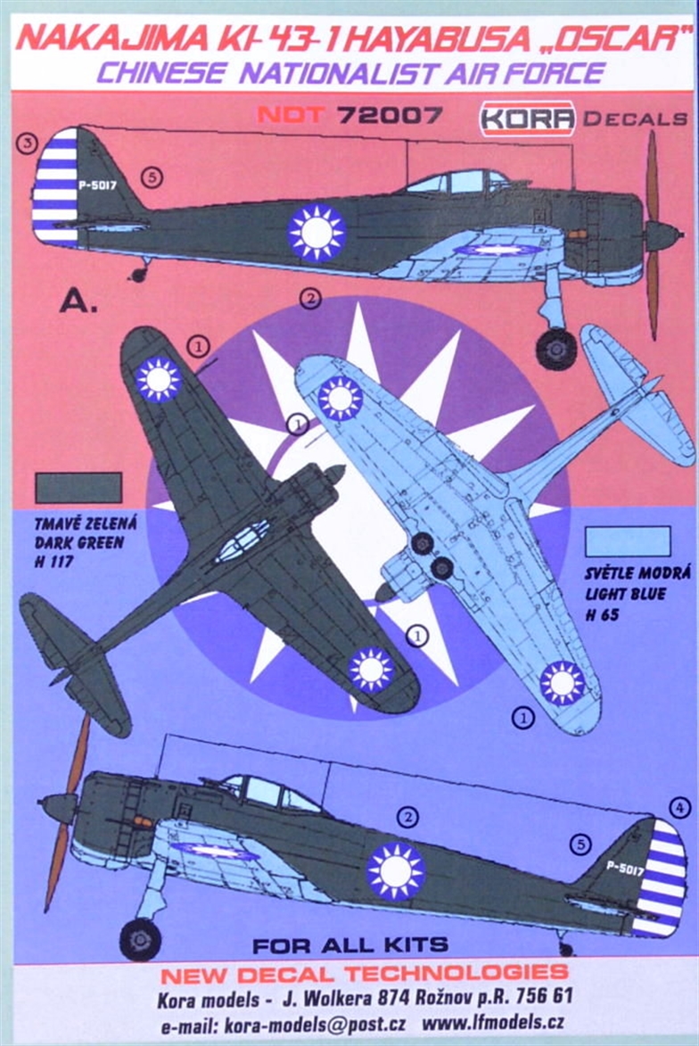 KORA MODEL - 1/72 Decals Nakajima Ki-43-1 Chinese National. AF