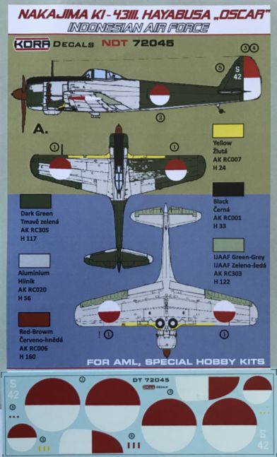 KORA MODEL - 1/72 Decals Nakajima Ki-43-III Oscar Indonesian AF
