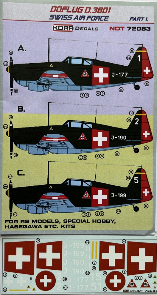 KORA MODEL - 1/72 Decals Doflug D.3801 Swiss Air Force Part 1