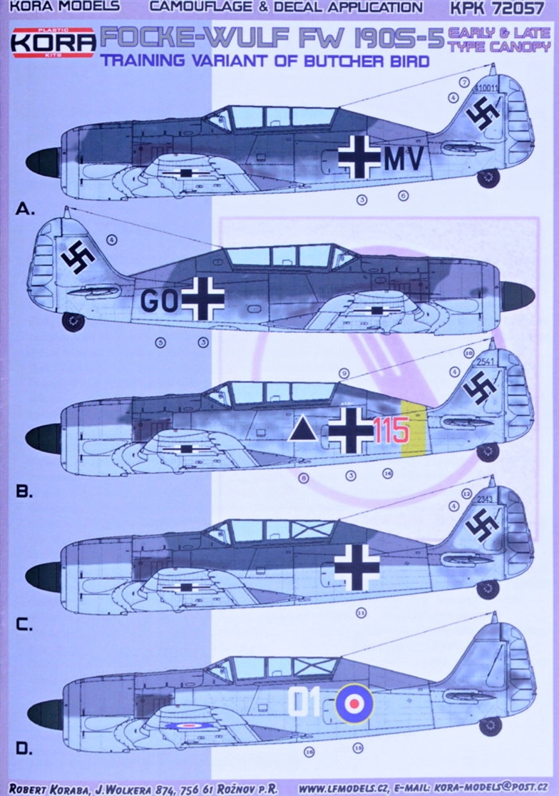 Kora Model - 1/72 Focke-Wulf Fw-190S-5 German & British. Complete plastic kit (Eduard) with decals, vacu canopy and photo-etched parts