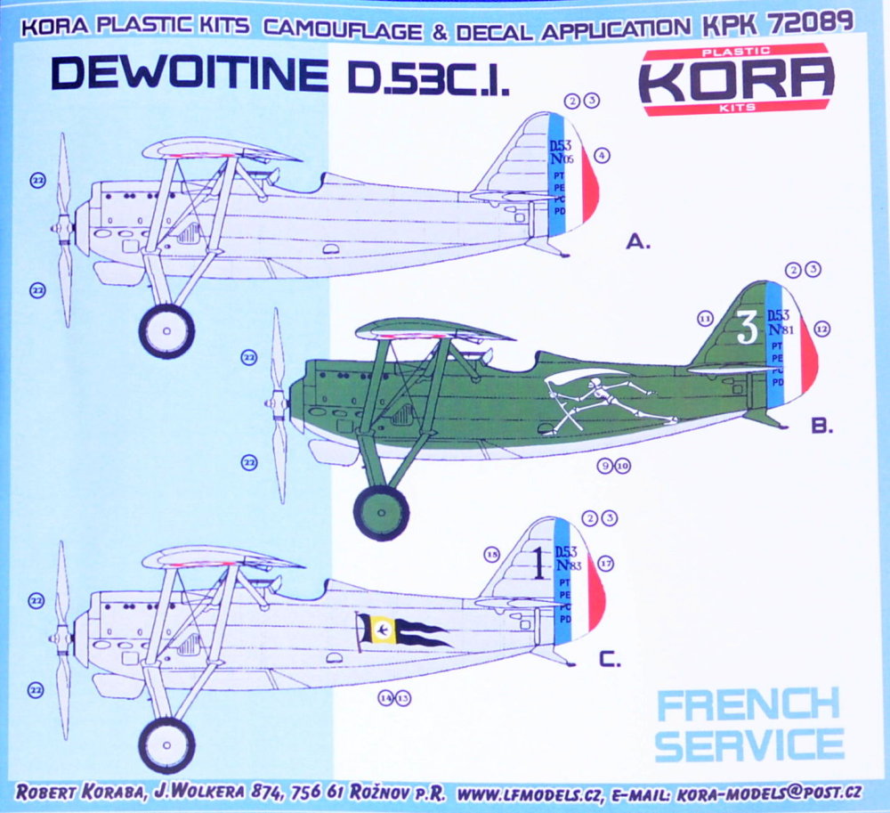 KORA MODEL - 1/72 Dewoitine D.53 C.I. French Service