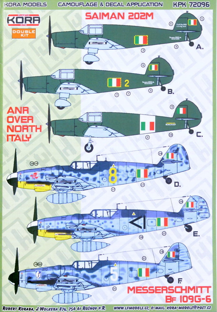 Kora Model - 1/72 Messerschmitt Bf-109G-6 and Saiman 202M ANR - Double kit.