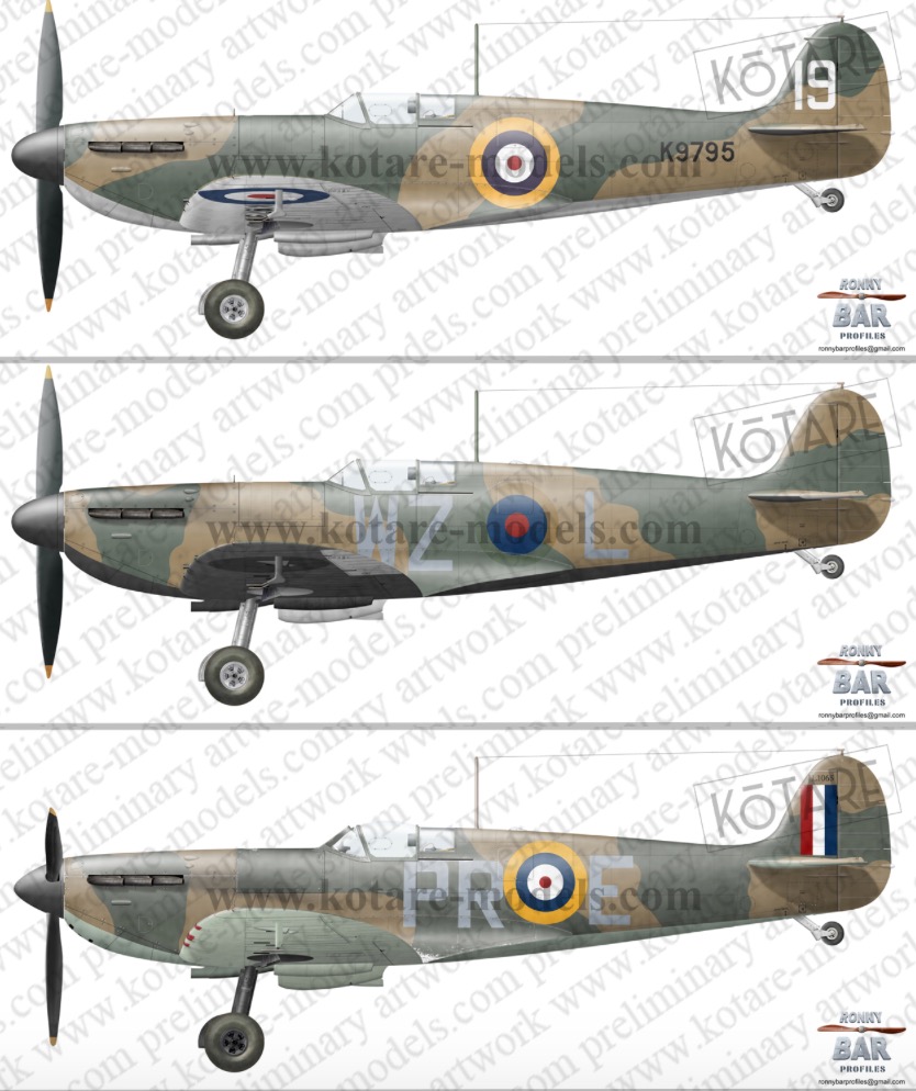-High quality Cartograf decals for 3 early production Spitfire Mk.I covering 1938 & 1939 pre-war to 1940 Battle of Britain including American volunteer pilot Ab Mamedoff,