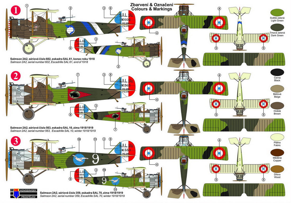 KOVOZAVODY PROSTEJOV - 1/72 Salmson Sal.2A2 in French Services (3x camouflages)