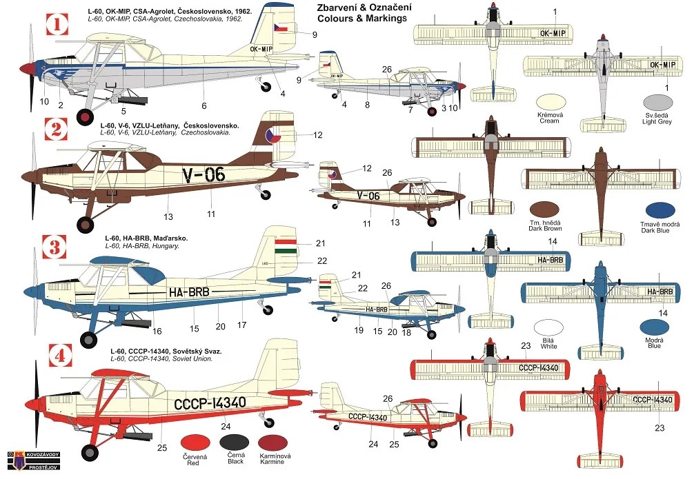 KOVOZAVODY PROSTEJOV - 1/72 Let L-60B Brigadyr Agro 1 (4x camouflages)