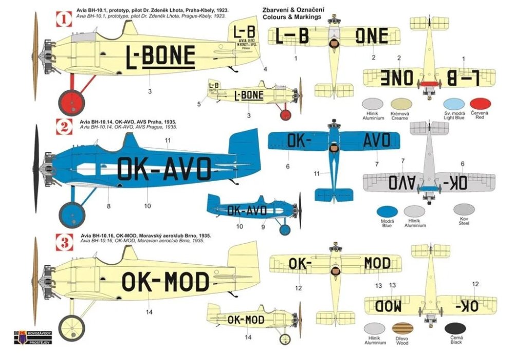 KOVOZAVODY PROSTEJOV - 1/72 Avia BH-10 3x camouflages