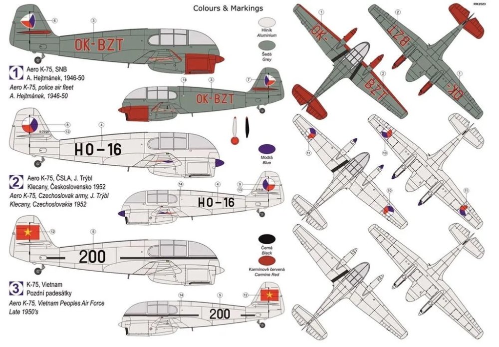 KOVOZAVODY PROSTEJOV - 1/72 Aero K-75 Military 3x camouflages