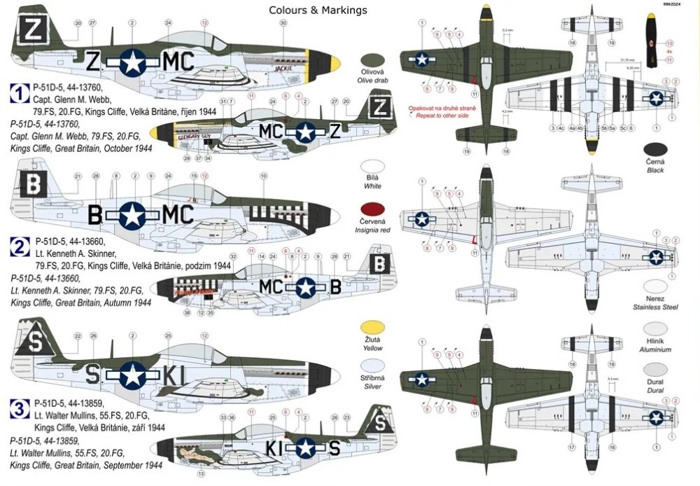KOVOZAVODY PROSTEJOV - 1/72 P-51D-5 Mustang 20th FG 3x camouflages
