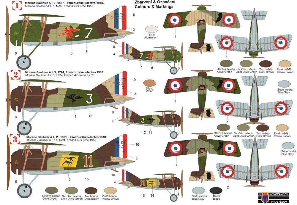 KOVOZAVODY PROSTEJOV - 1/72 Morane Saul. MS.A.I Over France, 3x camouflages