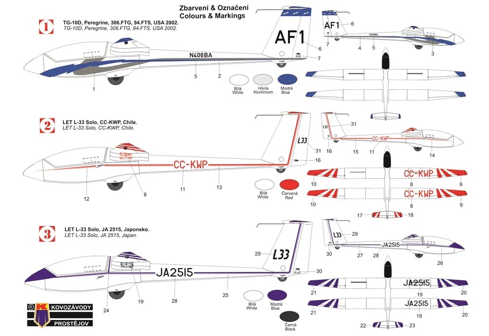 KOVOZAVODY PROSTEJOV - 1/72 TG-10D Peregrine / Let L-33 Solo 3x camouflages
