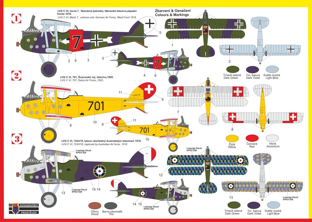 KOVOZAVODY PROSTEJOV - 1/72 LVG C.VI 3x camouflages