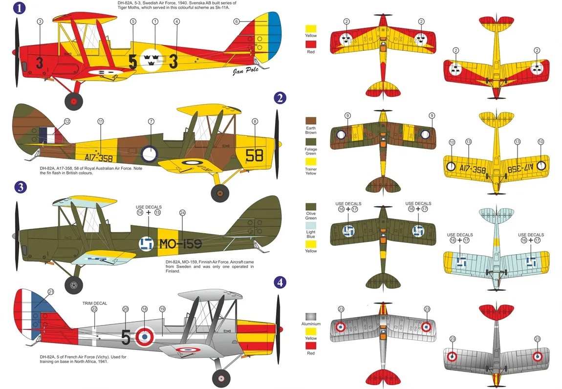KOVOZAVODY PROSTEJOV - 1/72 DH-82A Tiger Moth 4x camouflages