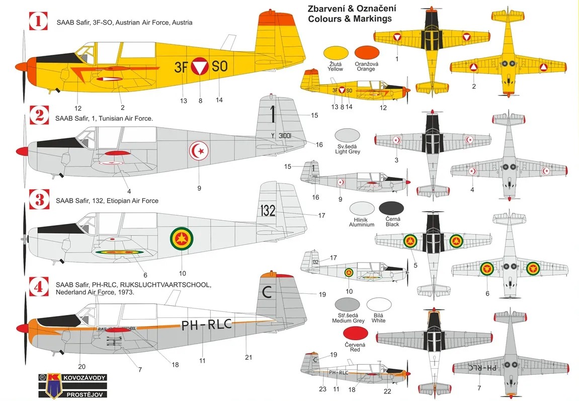 Kovozavody Prostejov plastic kit in 1/72 scale of the SAAB Safir in international version.