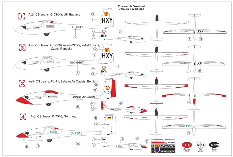 KOVOZAVODY PROSTEJOV - 1/72 Astir CS Jeans 4x camouflages