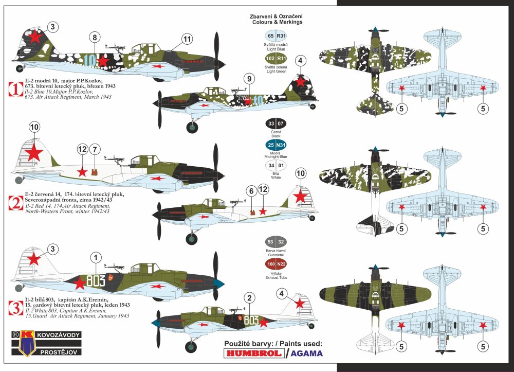 KOVOZAVODY PROSTEJOV - 1/72 IL-2 Interim Gunners Stat. 3x camouflages HI-TECH