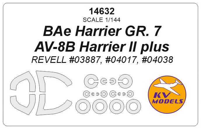 KV Decals - 1/144 BAe Harrier GR.7/AV-8B Harrier II plus (REVELL Part03887, Part04017, Part04038) + wheels masks (for Revell kits)
