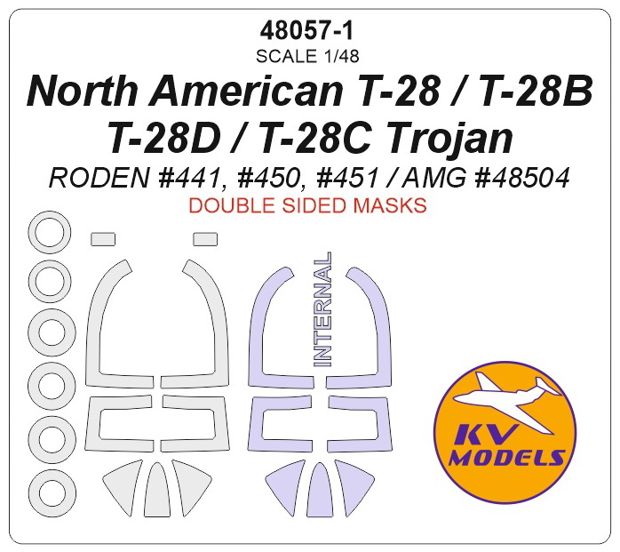 KV Decals - 1/48 North-American T-28 Trojan wheels and canopy paint masks (inside and outside) (for Roden and Amg kit)