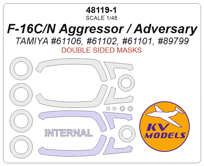 KV Decals - 1/48 F-16C/N Aggressor/Adversary + masks for wheels Double sided for Tamiya kits TAM61106, TAM61102, TAM61101, TAM89799