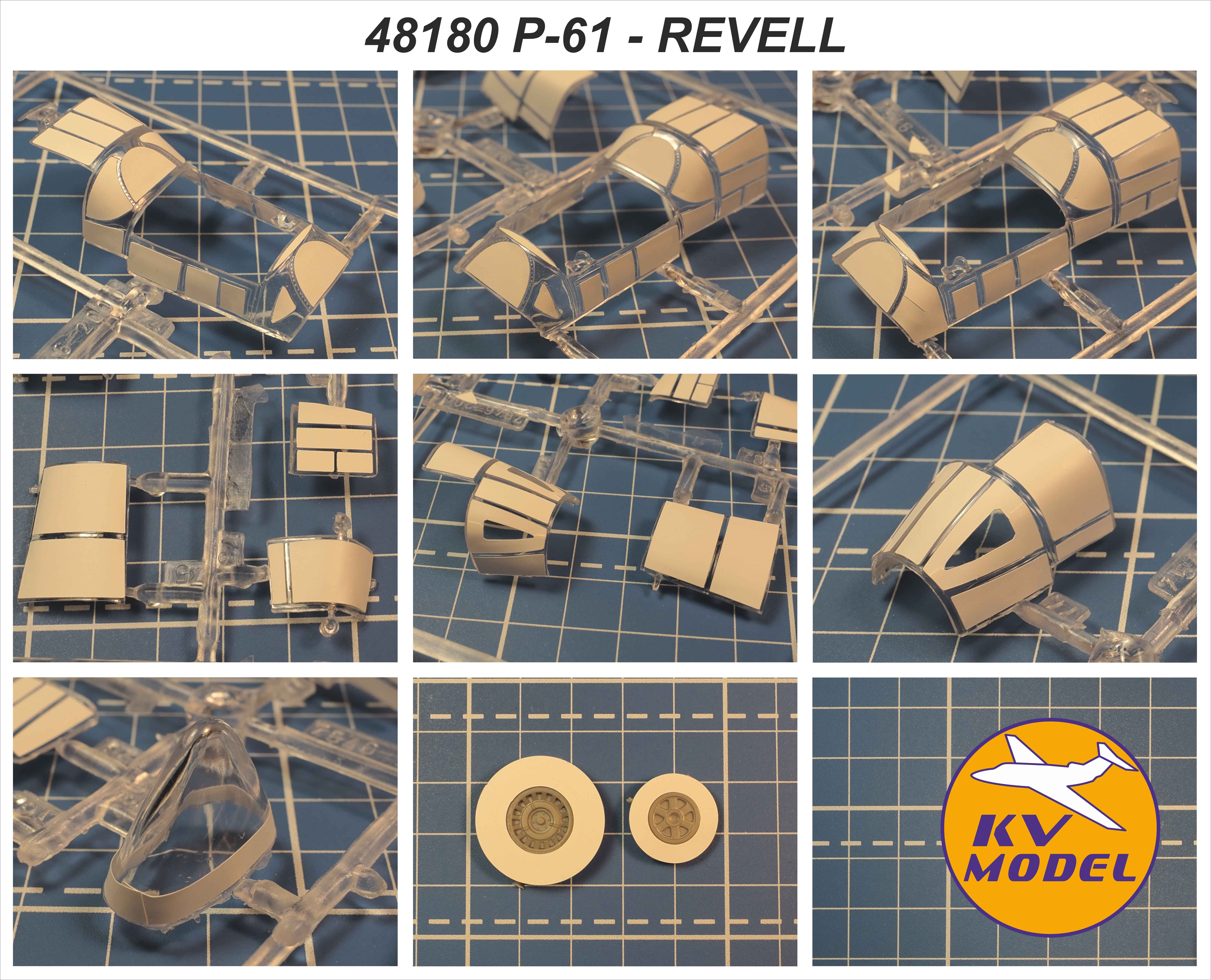 KV Decals - 1/48 Northrop P-61A/B Black Widow mask for Revell RV04887, Part04538, mask for Monogram MG85-7546, Part7546, Part8940, Part86030 wheels and canopy frame paint masks outside only