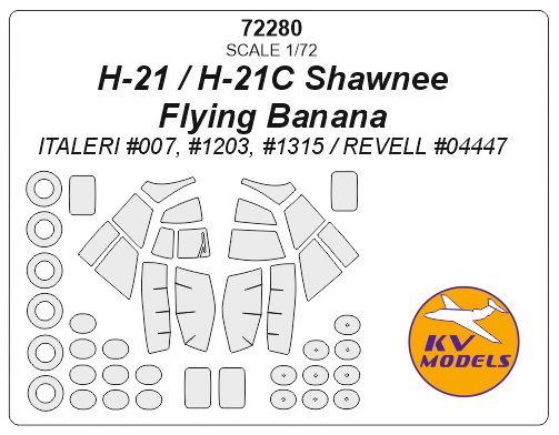 KV Decals - 1/72 Piasecki H-21 Shawnee / Flying Banana + wheels masks (for Italeri kits IT007, IT1203, IT1315 / Revell kit RV4447)