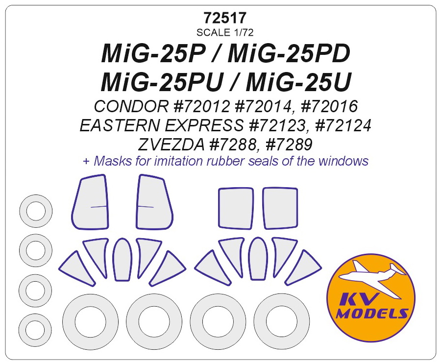KV Decals - 1/72 Mikoyan MiG-25 + wheels masks (for Condor kits 72012, Part72014, Part72016 and Eastern Express kits EA72123, EA72124)