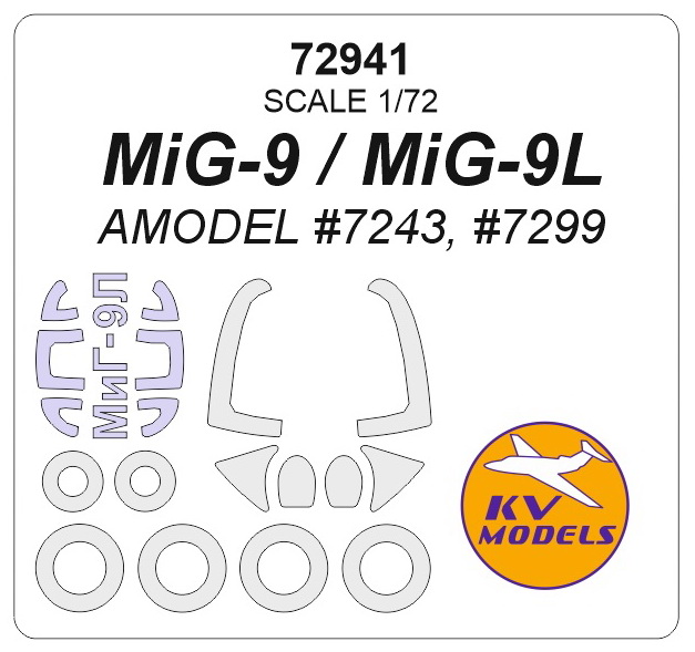 KV Decals - 1/72 Mikoyan MiG-9 + wheels masks (for A-Model kits AMU7243, AMU7299)