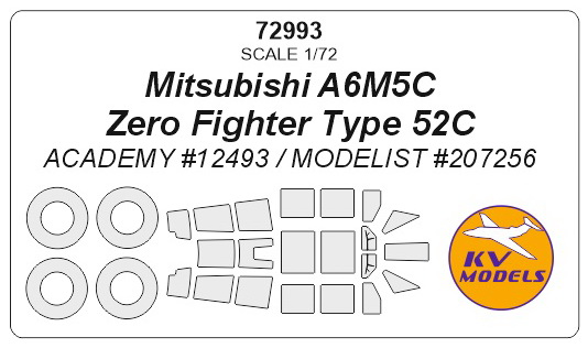 KV Decals - 1/72 Mitsubishi A6M5C Zero Fighter Type 52C + wheels masks (for Academy kits ACA12493 and Modelist kits 207256)