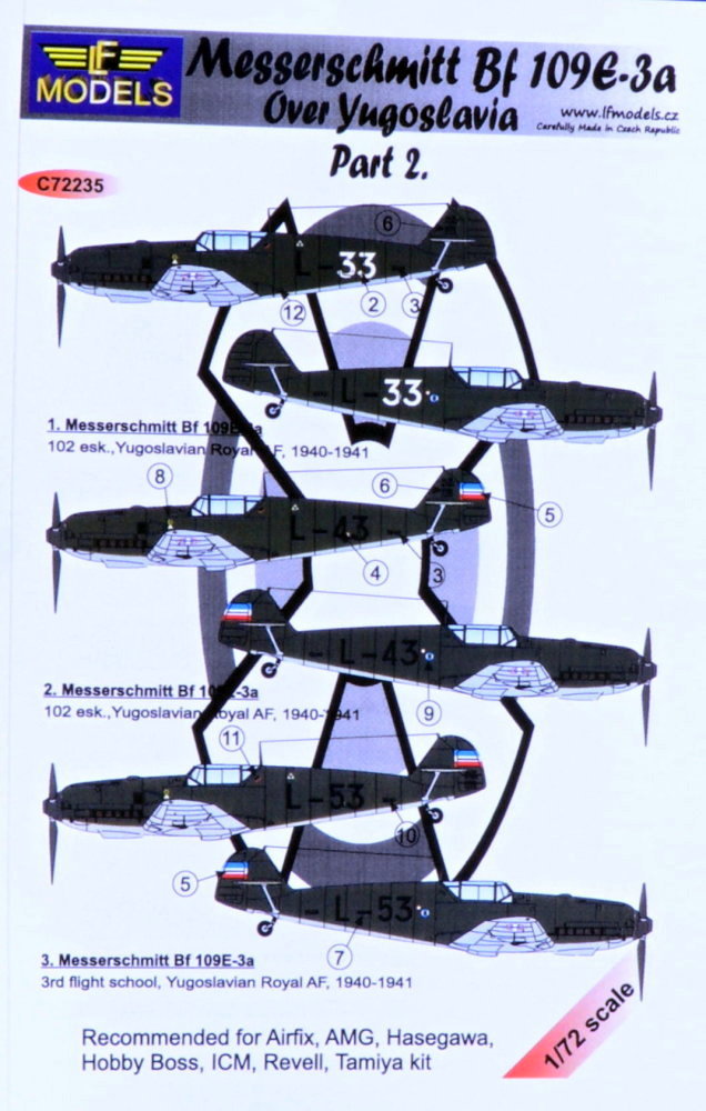 LF MODEL - 1/72 Decals Bf 109E3a Yugoslavia (ICM,REV,TAM) II.