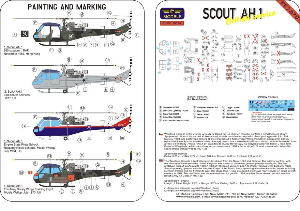 LF Model - 1/72 Westland Scout AH.1 British service Complete plastic kit with 4 decal options (2 x RAF, 1 x Empire State Pilots School, 1 x Special Air Services)