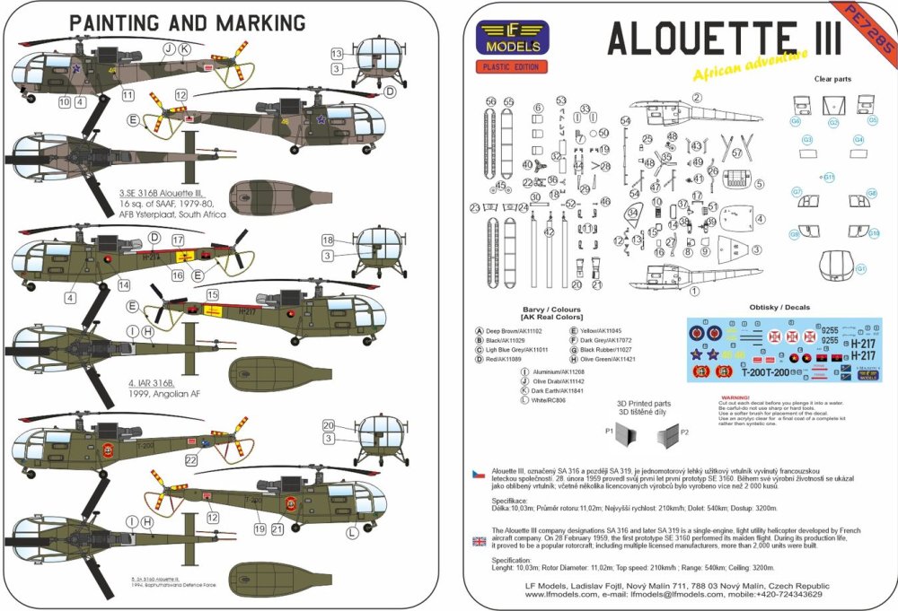 LF MODEL - 1/72 Alouette III African service 5x camouflages