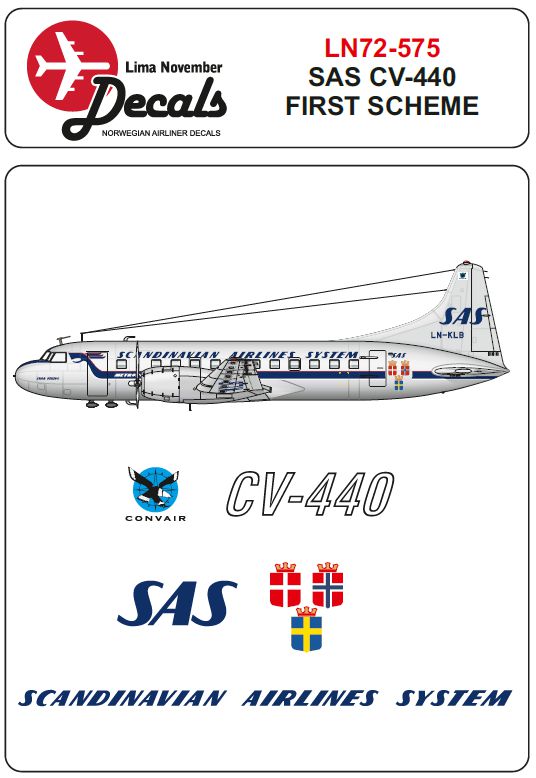Lima November - 1/72 Sas Convair CV-440 first scheme with masks for windows and wheels