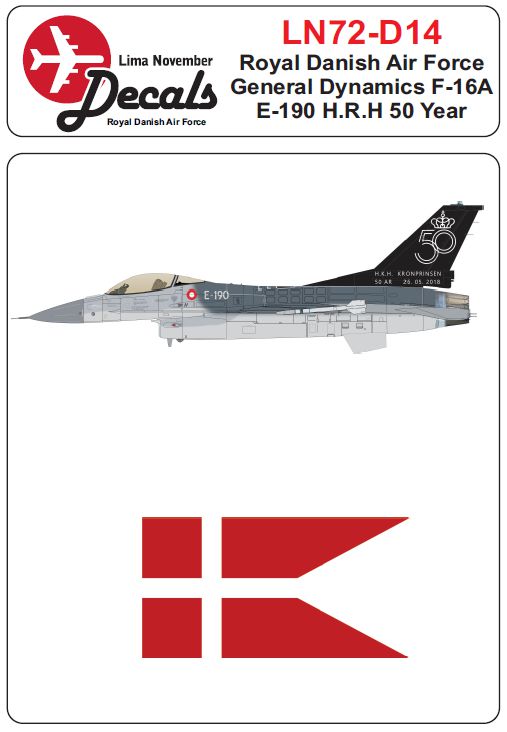 Lima November - 1/72 RDAF/Royal Danish Air Force General-Dynamics F-16A E-190 H.K.H. 50 Year