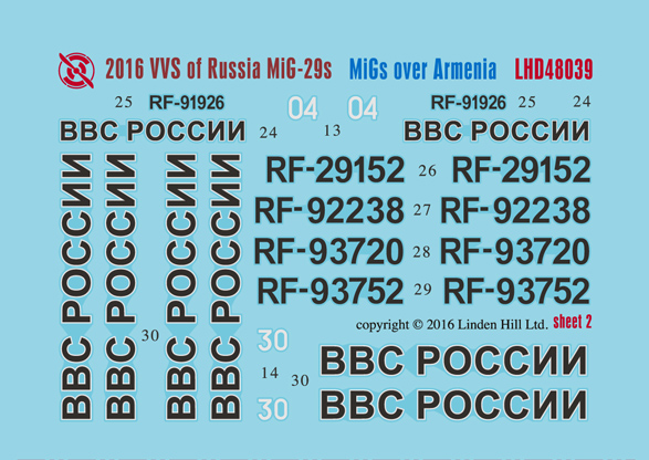 Linden Hill - 1/48 'Russian MiGs over Armenia - 2016 VVS of Russia MiG-29s' 5x MiG-29 9-13, 1x MiG-29UB