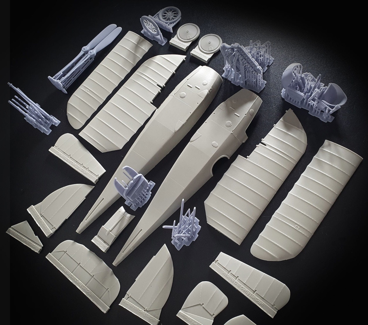 All struts, strong Abs resin printed with holes to easier connect parts with wire.