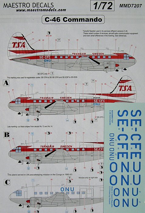 MAESTRO MODEL - 1/72 C-46 Commando - TransAir (decals)