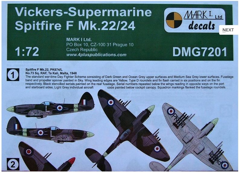 4+ Publications - 1/72 Decals Vickers-Supermar.Spitfire F Mk.22/24