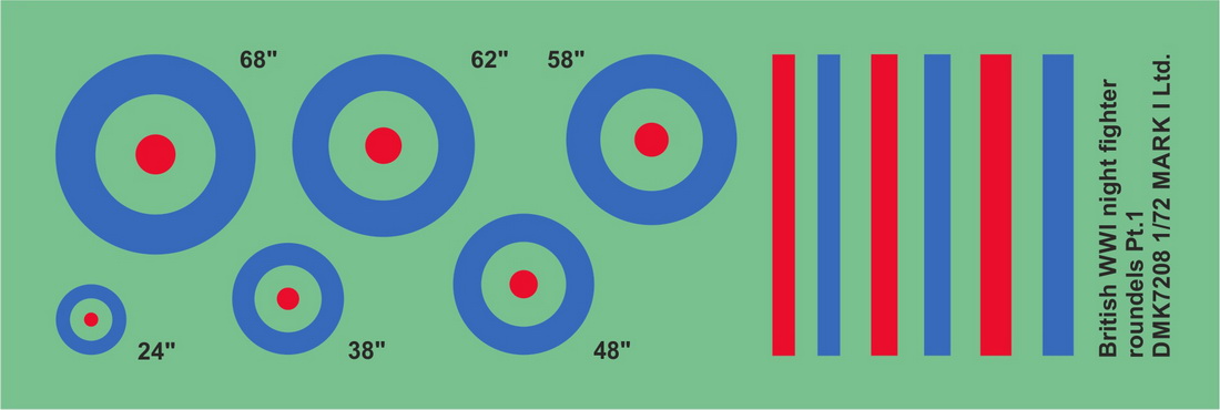 Mark 1 - 1/72 British WWI Night Fighter roundels Pt.1, 2 sets
