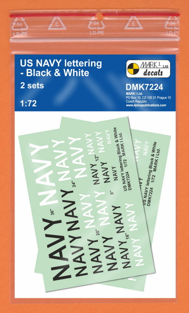 Mark 1 - 1/72 US Navy lettering Black & White, 2 sets