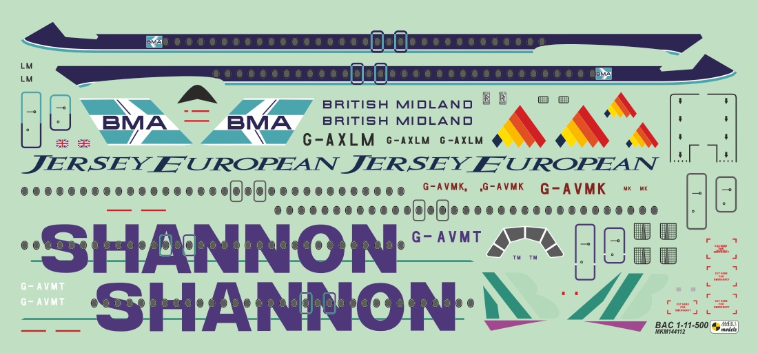 Mark I Models - 1/144 Bac 1-11-500 'British Midland, Jersey European, Shannon'