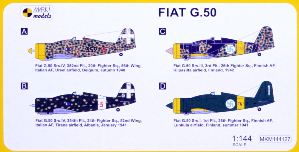 Mark I Models - 1/144 Fiat G.50 'Initial Series' (2in1 = 2 kits in 1 box) Italian AF, Finnish AF)