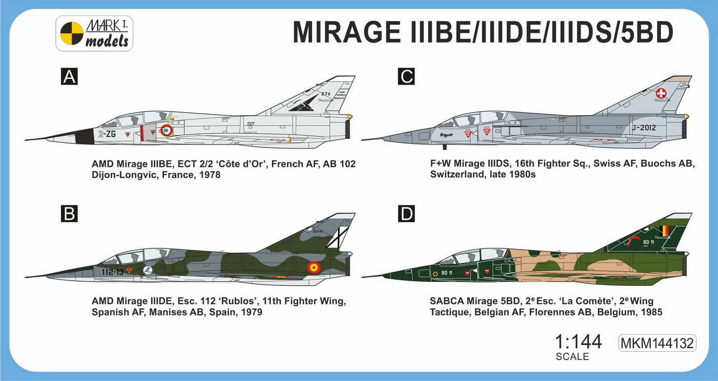 Mark I Models - 1/144 Dassault Mirage IIIBE/DE/DS/5BD Two-seater 'European Service'
