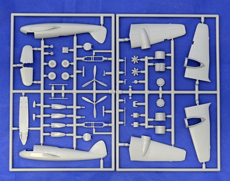 This injection-moulded kit contains 51 parts, 3 resin parts and five clear parts (cockpit canopies, position lights etc.). A comprehensive instruction leaflet and a decal sheet are included.