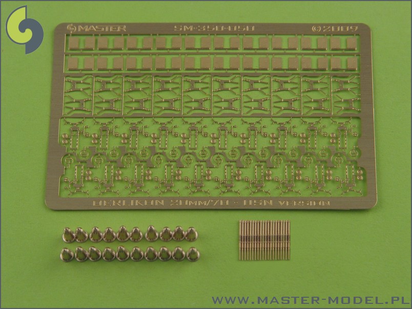 Master (PL) - 1/350 Oerlikon 20mm Usn type complete three dimensional gun, turned and etched elements (20pcs). Used in almost every U.S. (and other) warship of WWII (and post-war)