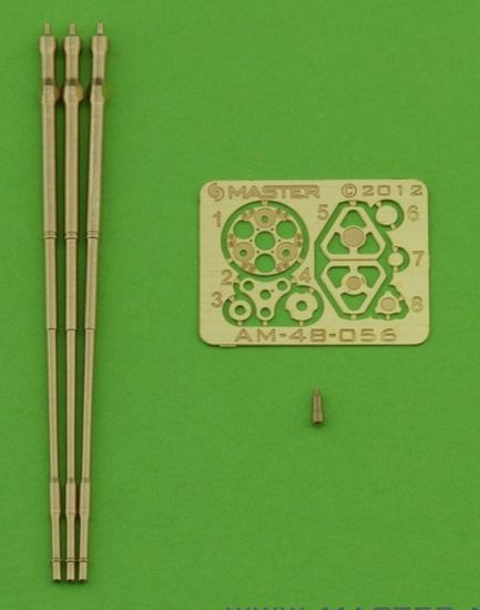 Master (PL) - 1/48 M197 Three-barrelled rotary 20mm cannon turned barrels with etched barrel clamps used on Bell AH-1W Super Cobra and Bell AH-1S Attack Cobra (for Fujimi, Italeri and Revell kits)