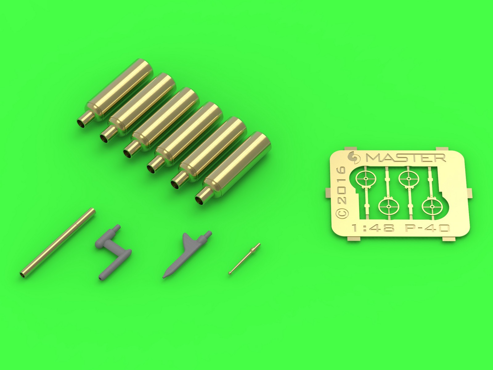 Master (PL) - 1/48 Curtiss P-40E - P-40N - details set - Browning .50 blast tubes, gunsight and Pitot Tube (for AMT/ERTL, Amtech, Arii, Eduard, Hasegawa, Hobby Boss, Hobbycraft, Italeri, Mauve, Monogram Pro-modeller and Revell kits)