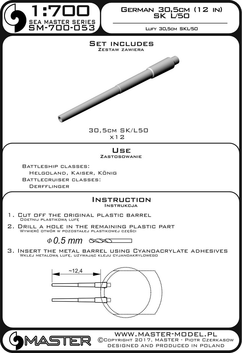 Master (PL) - 1/700 German 30,5cm/50 (12in) SK L/50 barrels (12pcs) - Helgoland, Kaiser, König and Derfflinger classes