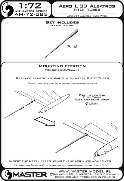 Master (PL) - 1/72 Aero L-39 Albatros - Pitot Tubes (designed to be used with Eduard, Kopro (ex KP) and South Front kits)[L-39C L-39ZO L-39ZA]