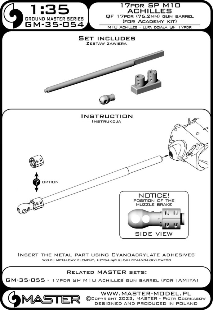 MASTER (PL) - 1/35 17pdr SP M10 Achilles 76,2mm gun barrel for Academy